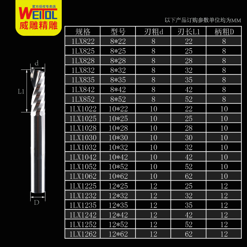 Class 5A Germany imported 8mm 10mm 12mm single-edged spiral milling cutter CNC computer engraving machine tool