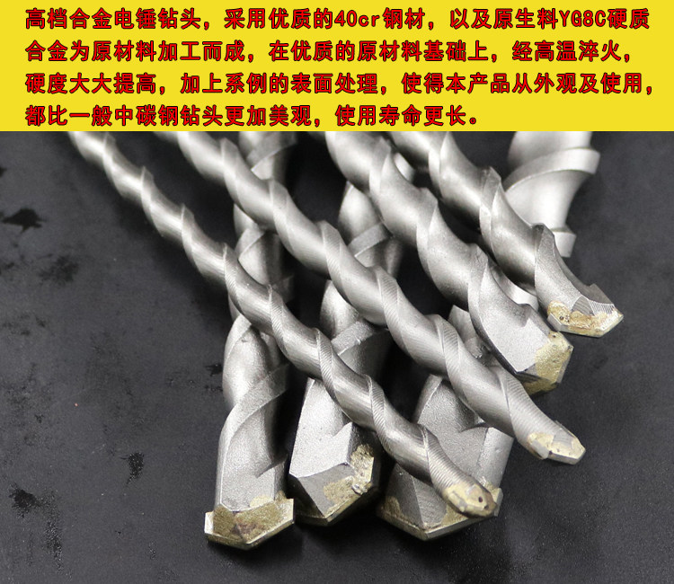 Rotary hammer drill Square head drill Impact drill bit Four pit square shank drill bit Through the wall drill hole concrete and drill bit