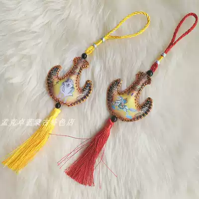 Mongolian characteristic leather painting handmade car pendant Mongolian leather bag wine bag shape car hanging decoration interior decoration hanging