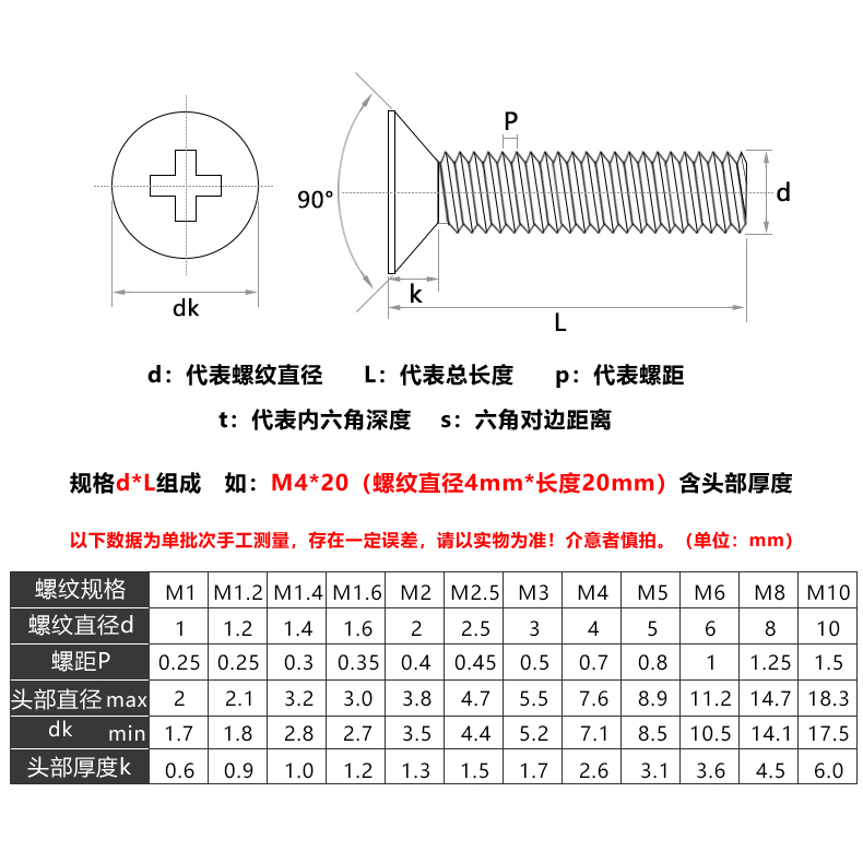 M4*6x8 10-80mm Countersunk Flat Head Screws Authentic 316 Stainless Steel Cross Recessed Screws Resistant to Acid, Alkali and Salt