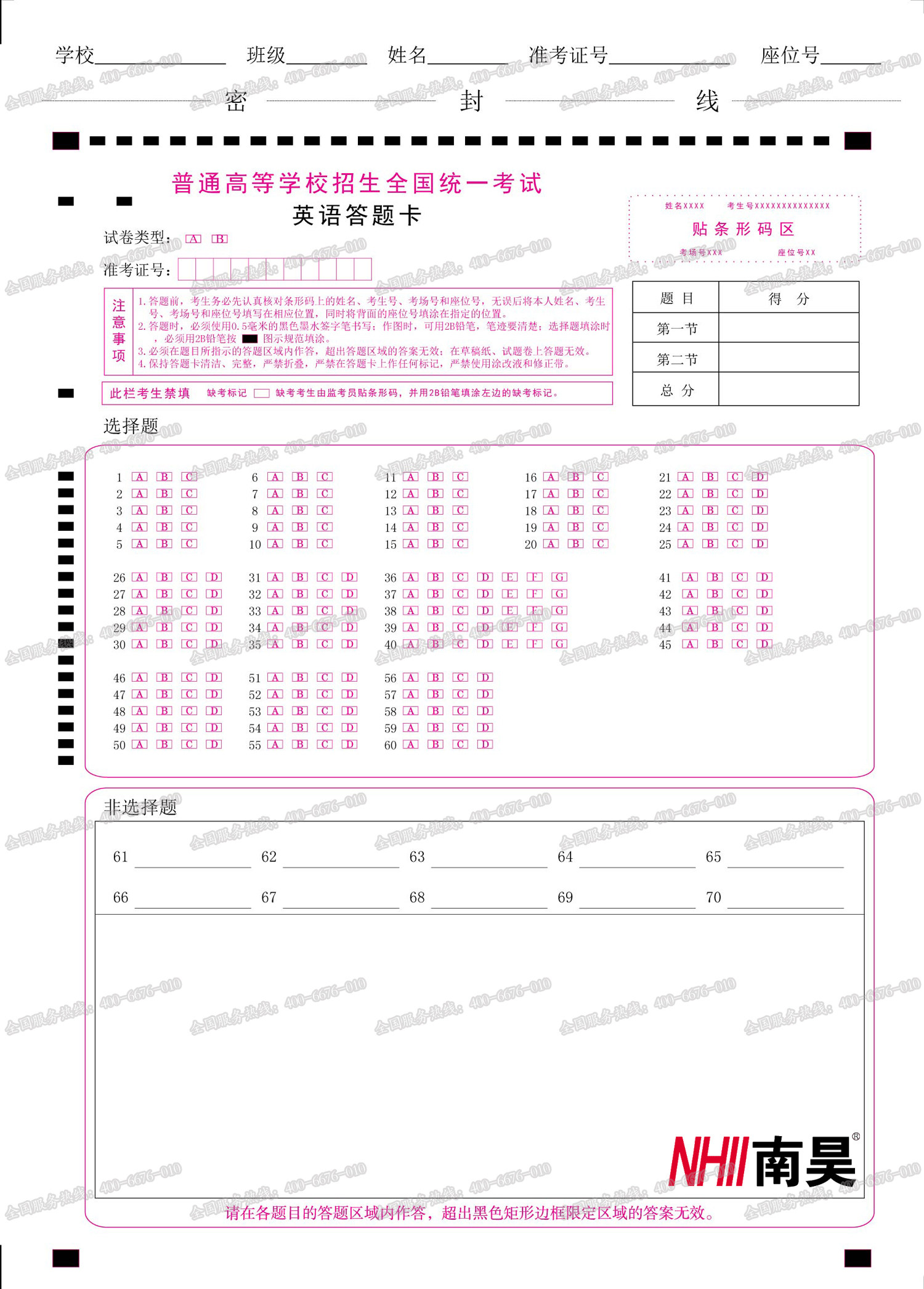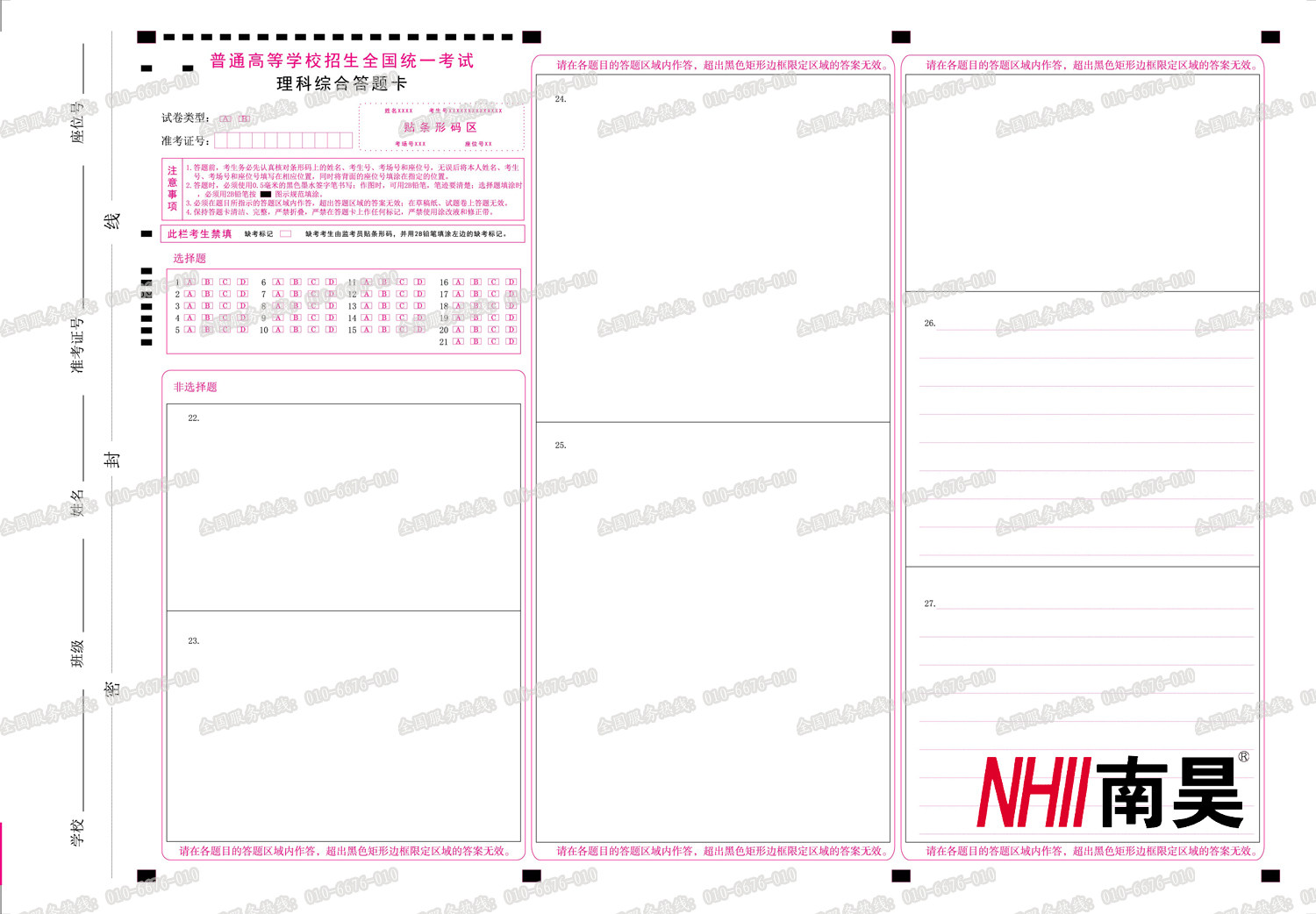 2022 Gaokao Language Math English Liberal Arts Comprehensive Science Subjects Comprehensive Exam Questions New Class Title Genuine examination Standard Answers Card
