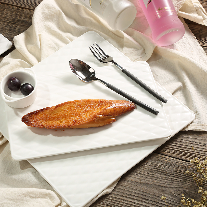 Creative Ceramic Breadboard Pizza Plate Tray Dessert Plate Solid Color Geometric Diamond Dessert Plate Flat Plate Fruit Plate
