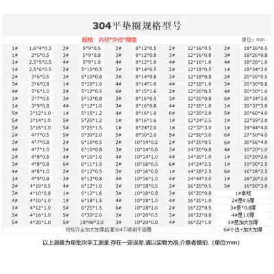 304 stainless steel gasket 1# standard flat pad M1 6M2M2 5M3M4M5M6M8M10M12M27 meson washer