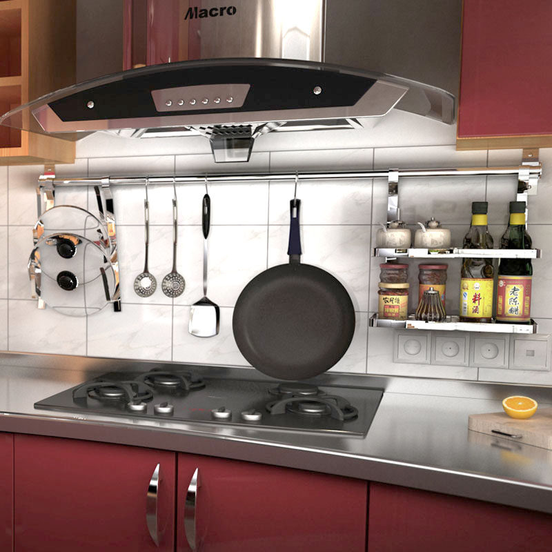 Stainless steel tube Kitchen pylons Hanging rod Kitchen pylons hanging hook J hook Wall-mounted combination Wall-mounted storage layer shelf