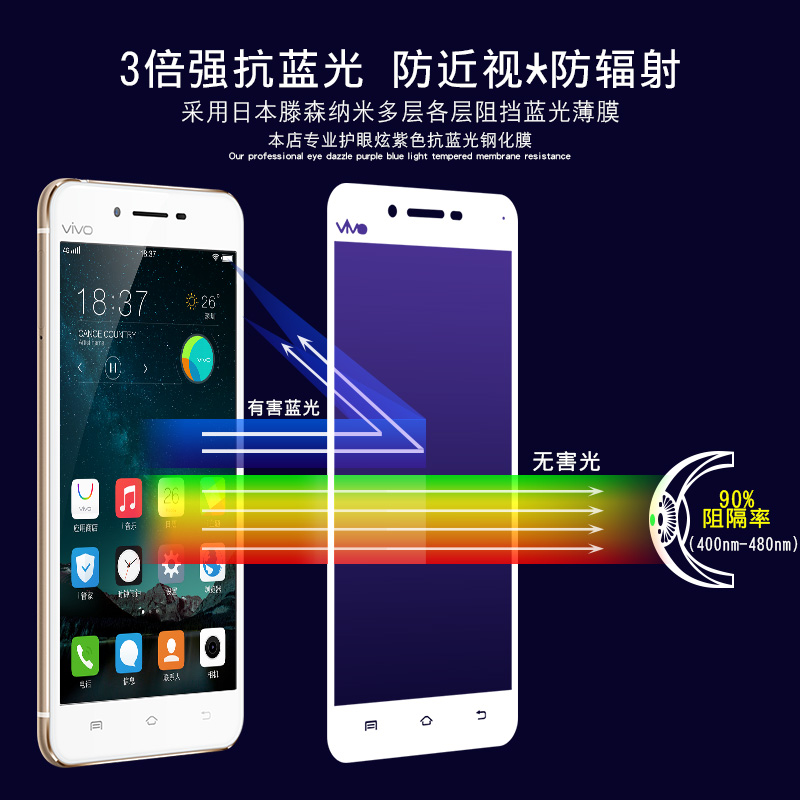Backgammon vivoX6plus tempered film vivo x6 full screen cover original anti-blue light 3D mobile phone front and rear film x6s full package without white edge screen protection Rigid glass film anti-fingerprint V