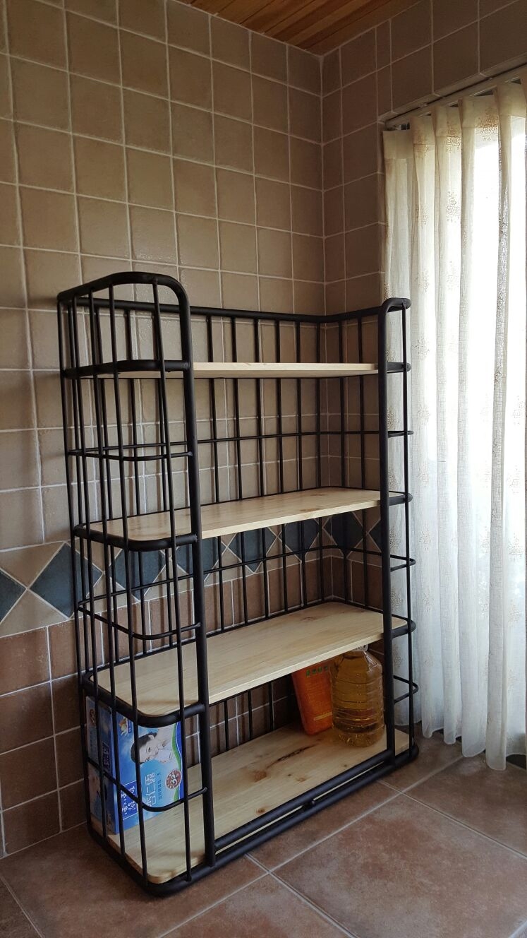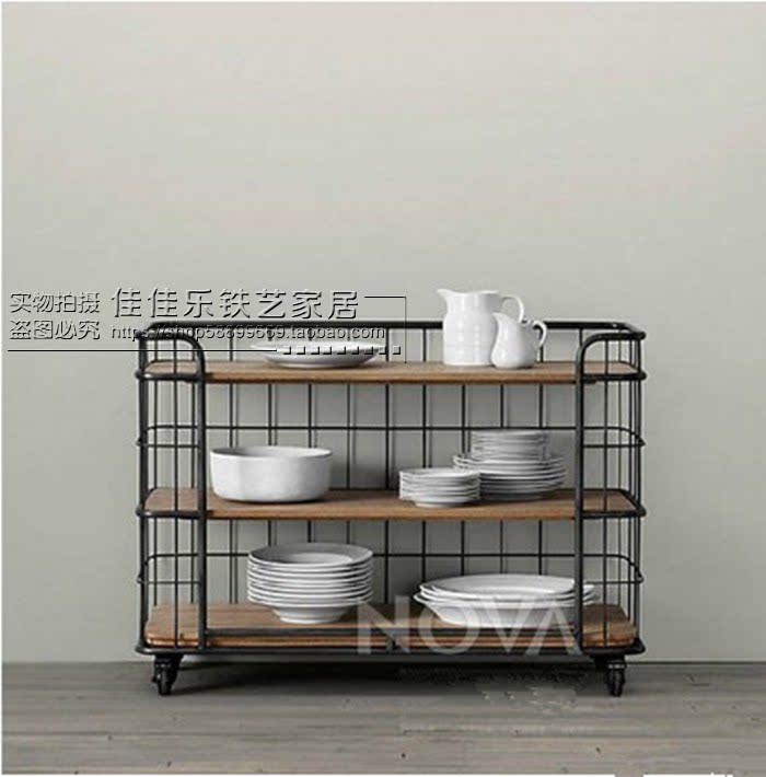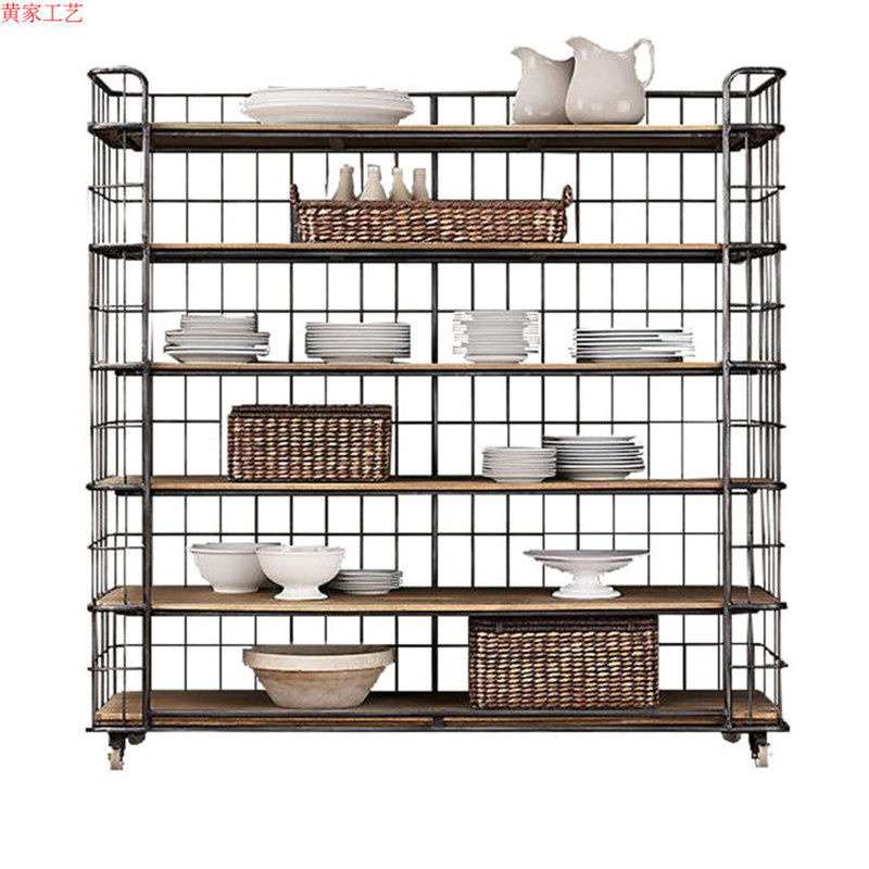 American Iron Art Dining Cabinet Retro Solid Wood Show Shelf Shelves Shelf Kitchen Shelving Multilayer Partitions With Wheels