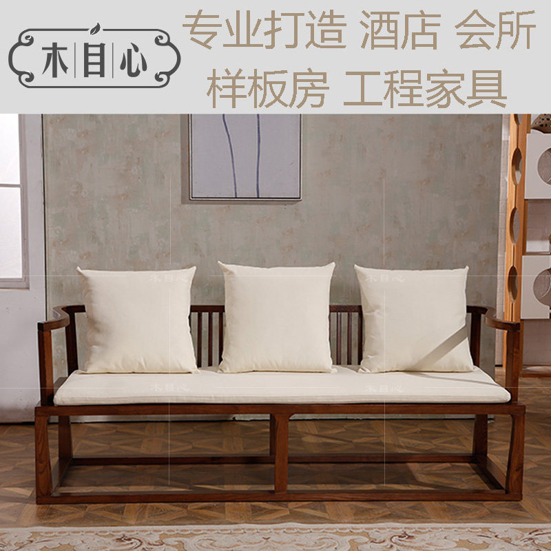 full solid wood sofa white wax wood new Chinese style sofa combination living room sofa Nordic modern simple day style cloth sofa