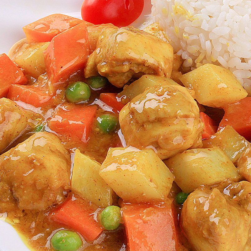 Chicken Carrot Potato Green bean Water Chicken essence seasoning Curry powder Ketchup White sugar Edible salt Vegetable oil Ginger Garlic Starch Spices