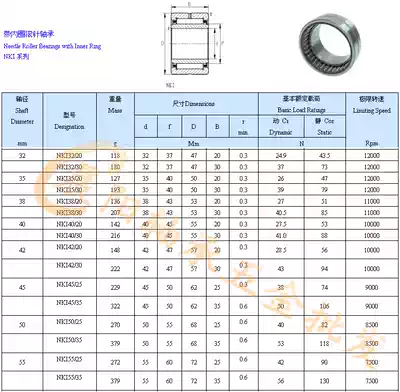 Needle roller bearing with inner ring NKI Inner diameter 32 35 38 40 42 45 50 55 Height 20 30 25 35