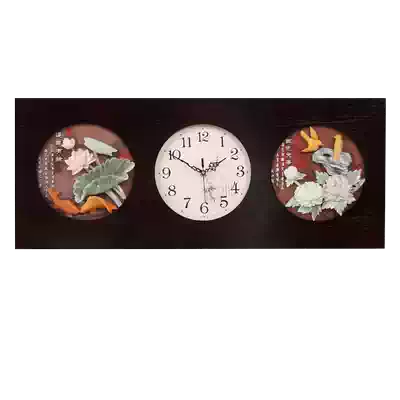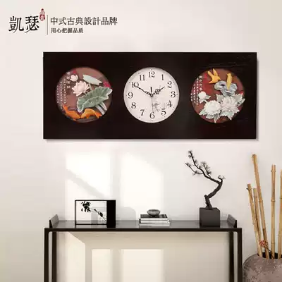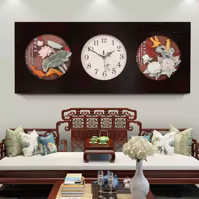 Clock wall clock Living room creative wall clock Chinese style square clock New Chinese style mute jade carved decorative quartz clock
