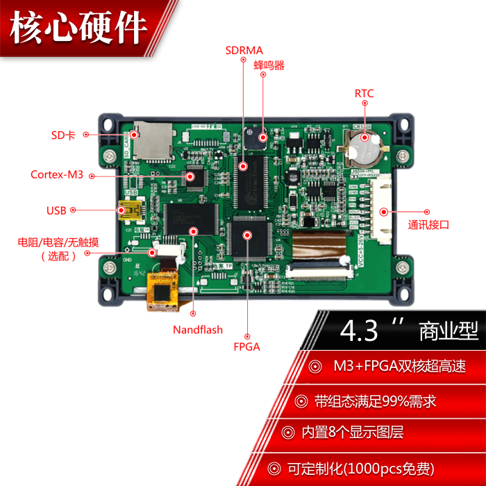 4 3 inch A commercial serial port screen with touch 480 * 272 1G memory configuration SD RTC 5-26V