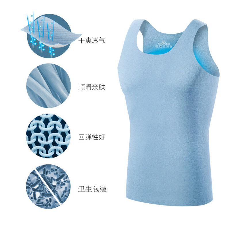 Ice Silk Scarring Men's Vest Men's Damp Slim Fit Without Sleeveless T-shirt Fitness Tight Sports Quick Dry Outside Wearing Kampon