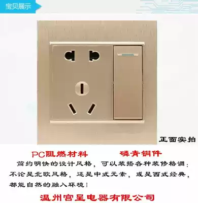 (3D brushed) Gongchen wall socket with switch one open double cut switch with five hole socket champagne gold