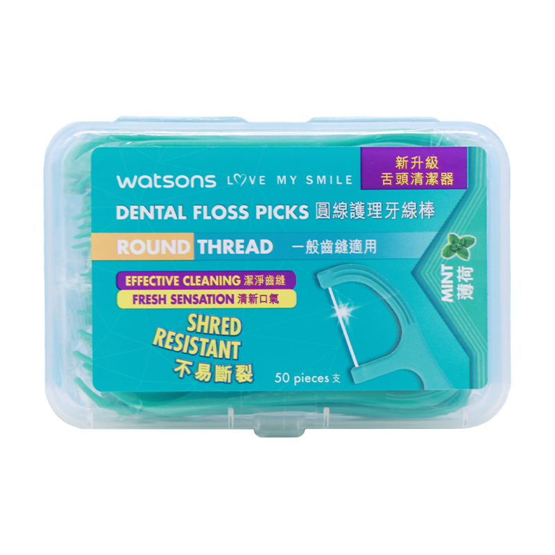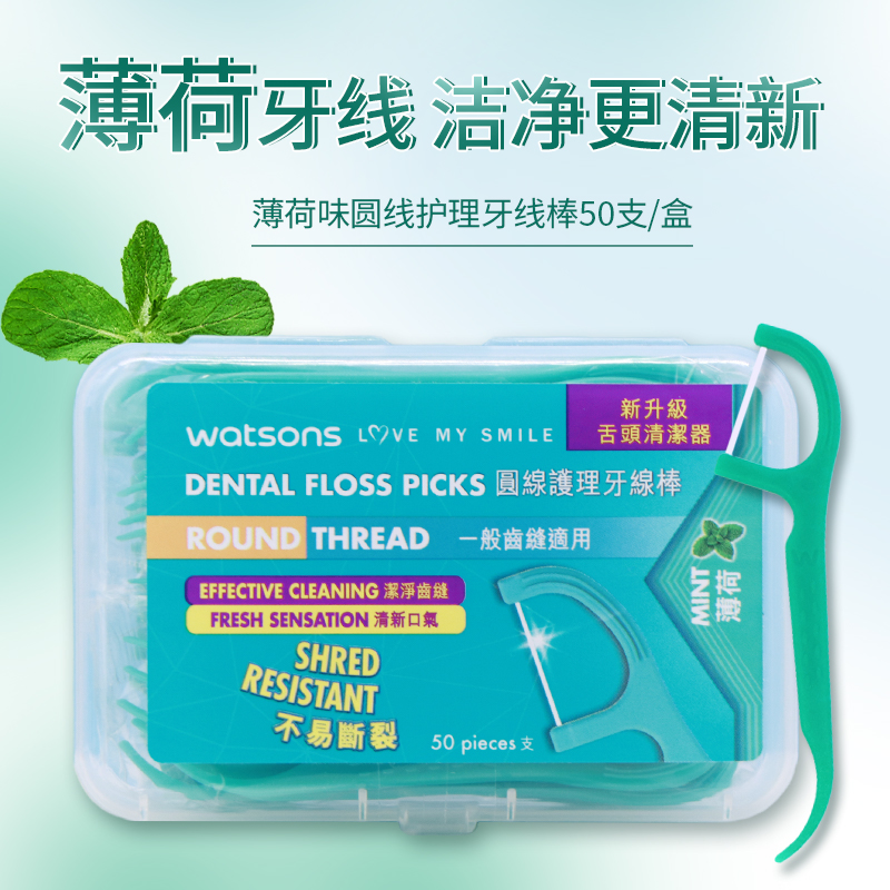 Watsons floss ultra-fine teeth picking mint flavor round thread high tension care dental floss stick family pack 6 boxes 300