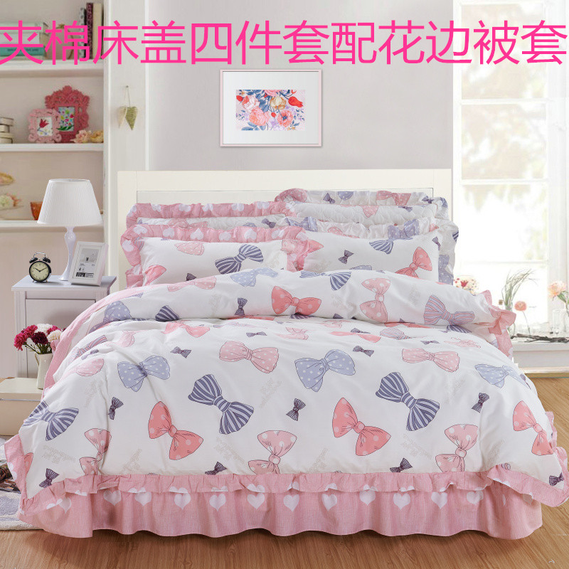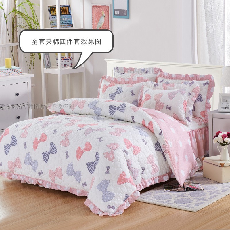 Quilted Clips Cotton Pure Cotton Bed Skirt Style Bed Cover Cartoon Single Bed Hood Full Cotton Rounded Corners Thickened Lace-sheet European-style bed-Taobao