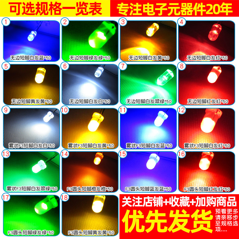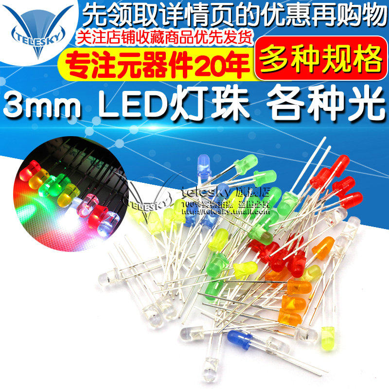 3mm LED Lamp LED Bead Highly Bright White Hair Red Yellow Blue Green Common Yin Seven Color Purple Red Hair Green