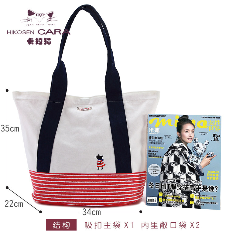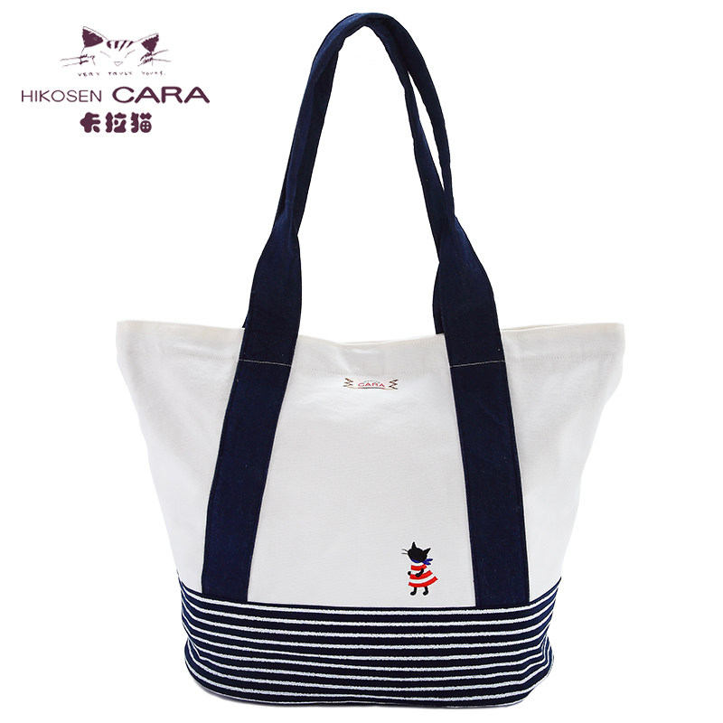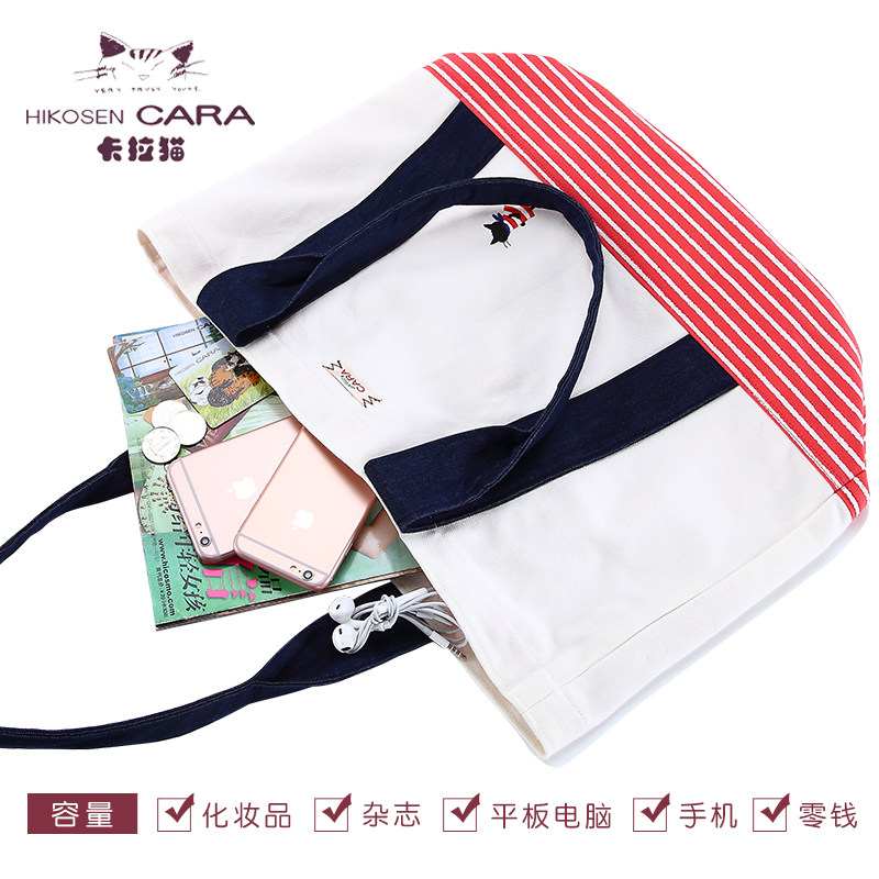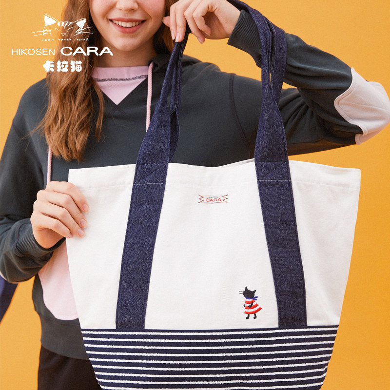HIKOSEN CARA Cara catwoman striped literary cute small fresh fabric canvas bag portable shoulder bag