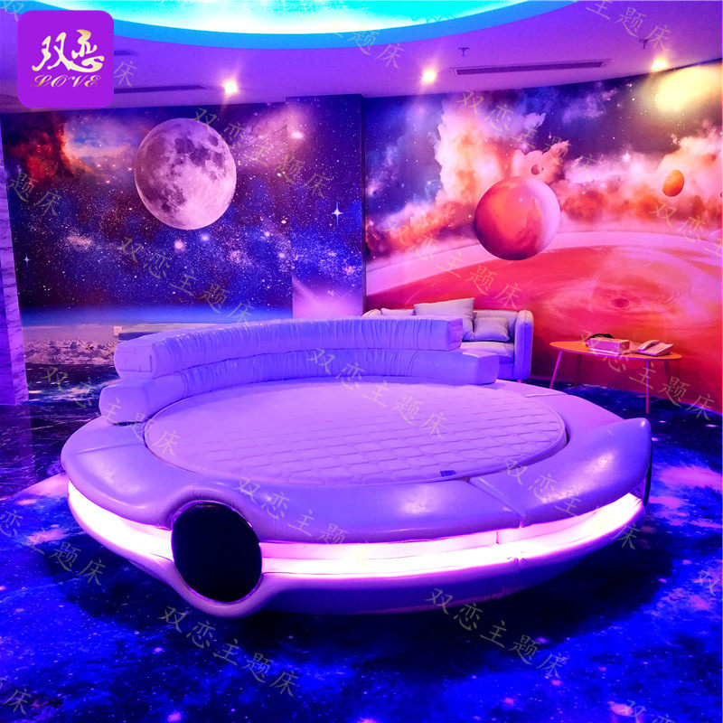 Starry Sky Themed Romantic Leather Art Round Bed Hotel Electric Spice Bed Smart Guesthouse Luminous Bed Couple Shake Water Bed