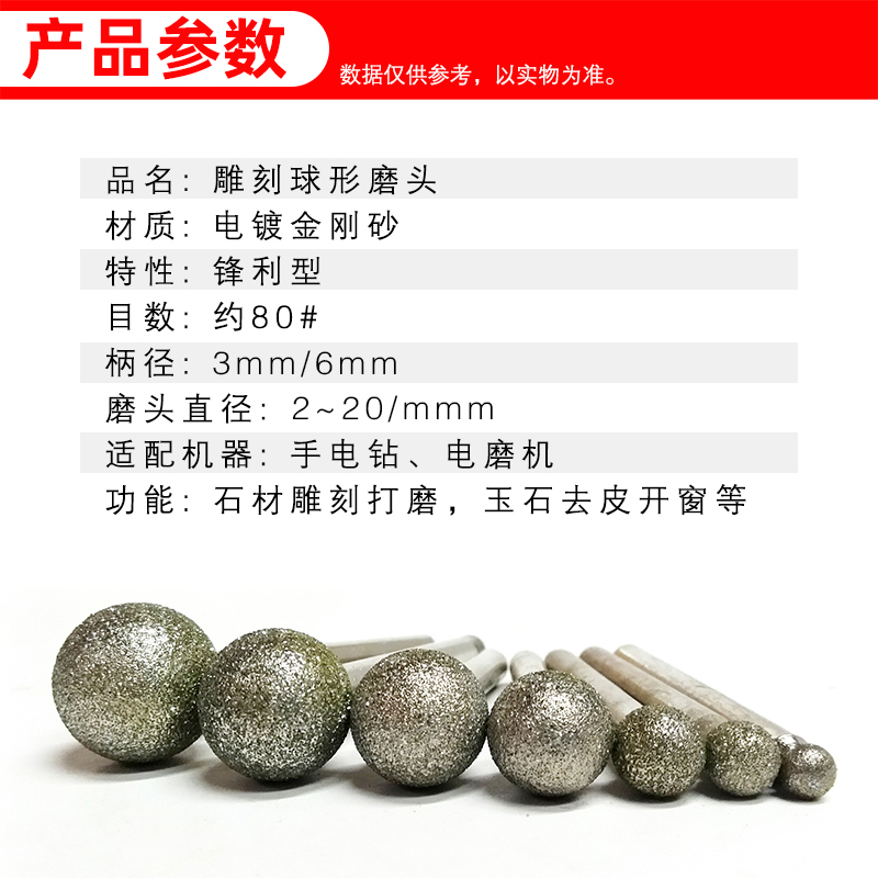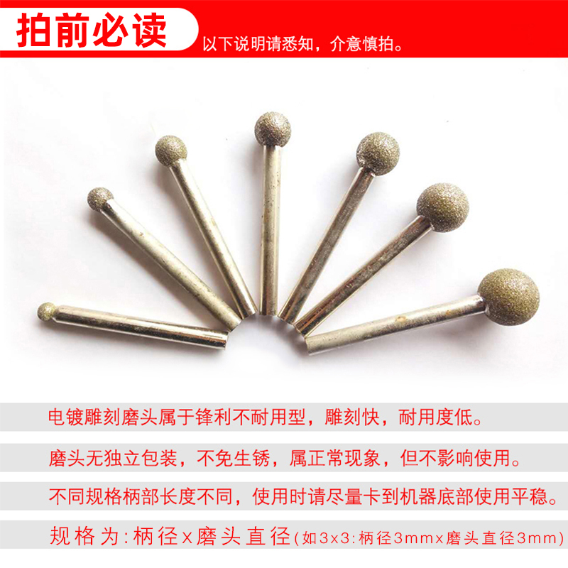 Stone engraving tool plated diamond round ball type 3mm 6mm handle jade peeled lettering grinding head grinding stick