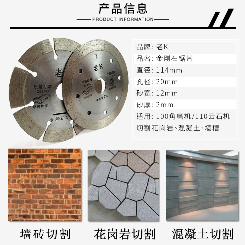 Stone cutting sheet 114 Old K diamond granite concrete slotted cutting saw blade sharp engraving dry slicing