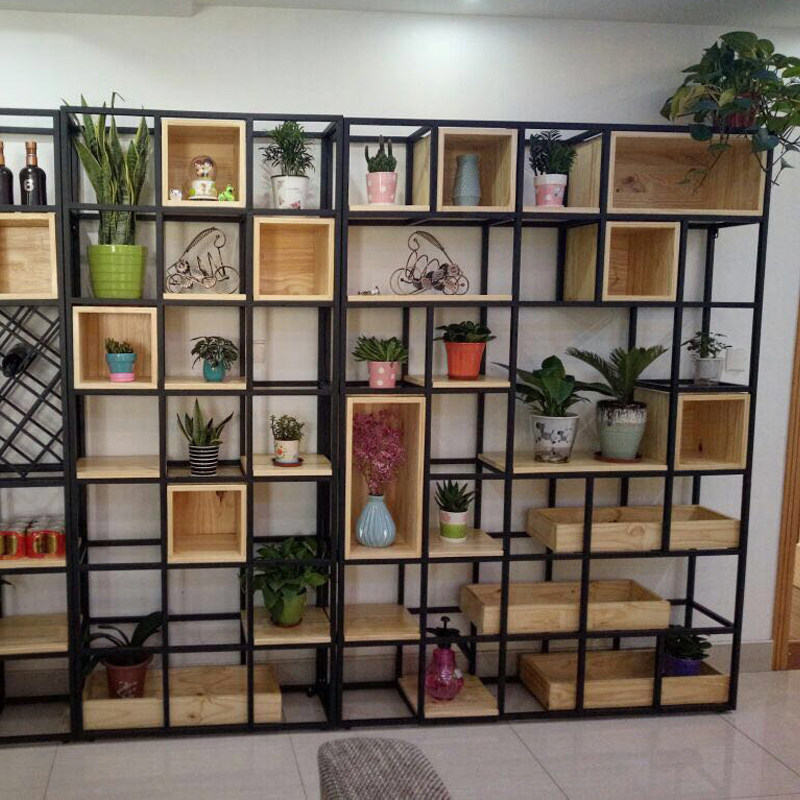 Iron Art Shelf Life Room Genguan Creative Decoration Dining Room Partition Flower Shelf Storage Cabinet Industrial Style Loft Bookshelf