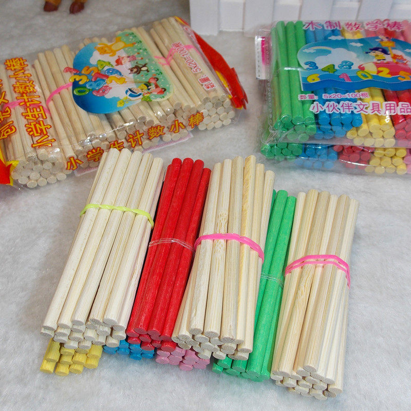 Elementary school math sticks Enlightenment arithmetic teaching aids early education toys Bamboo and wood counting sticks Color 100 sticks