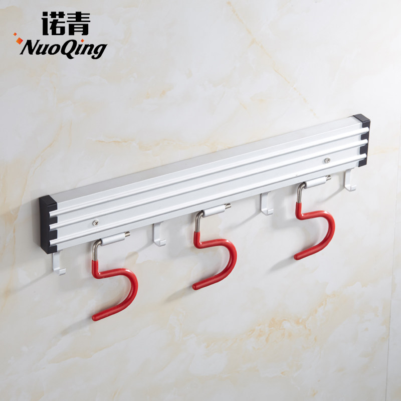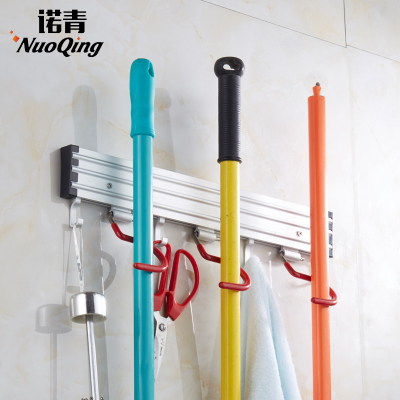 Free-to-punch mop rack sweep Rack Hung Hook Space Aluminum Makeup Room Bathroom Pendant balcony Shelf