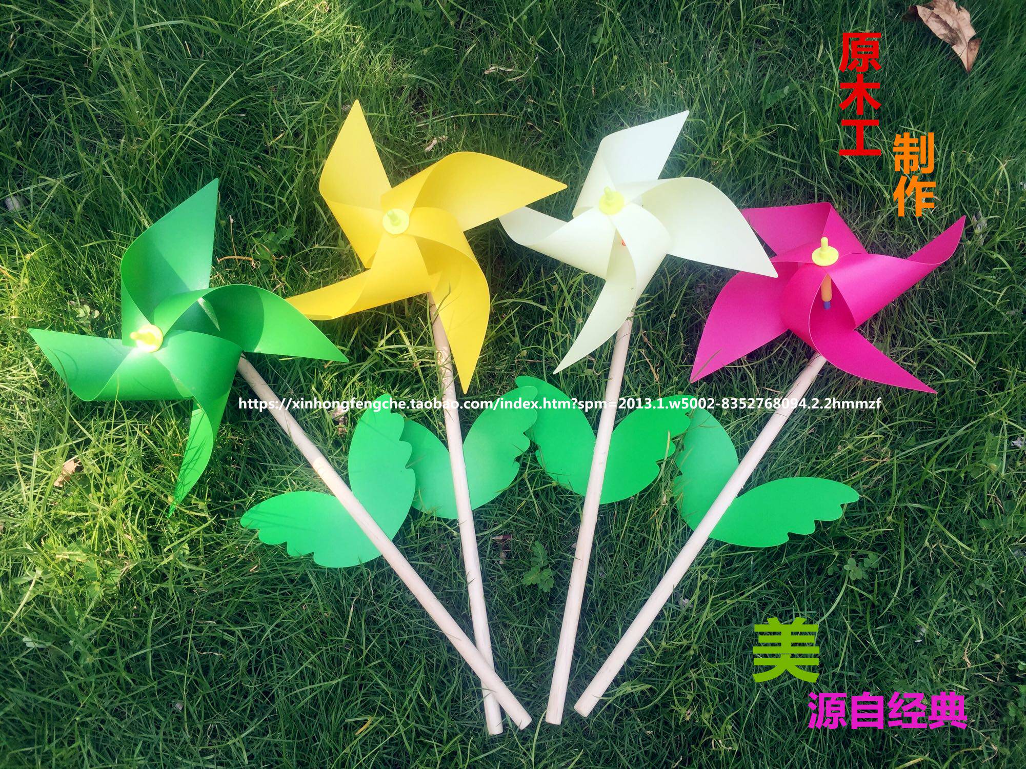 New Hon Windmill Wood Pole Fields Garden Colorful handmade eco-friendly plastic materials Toy windmill shooting props