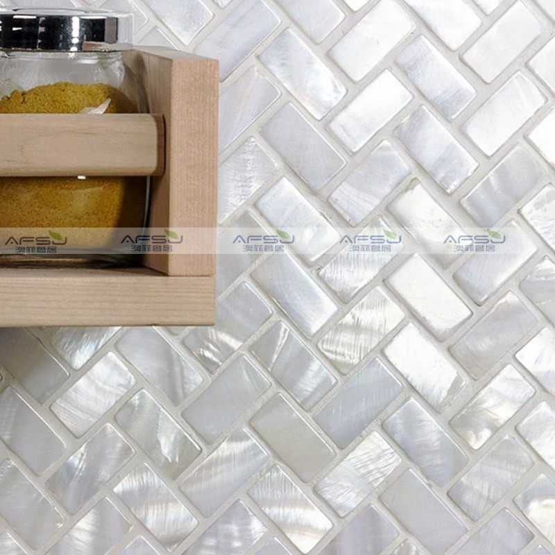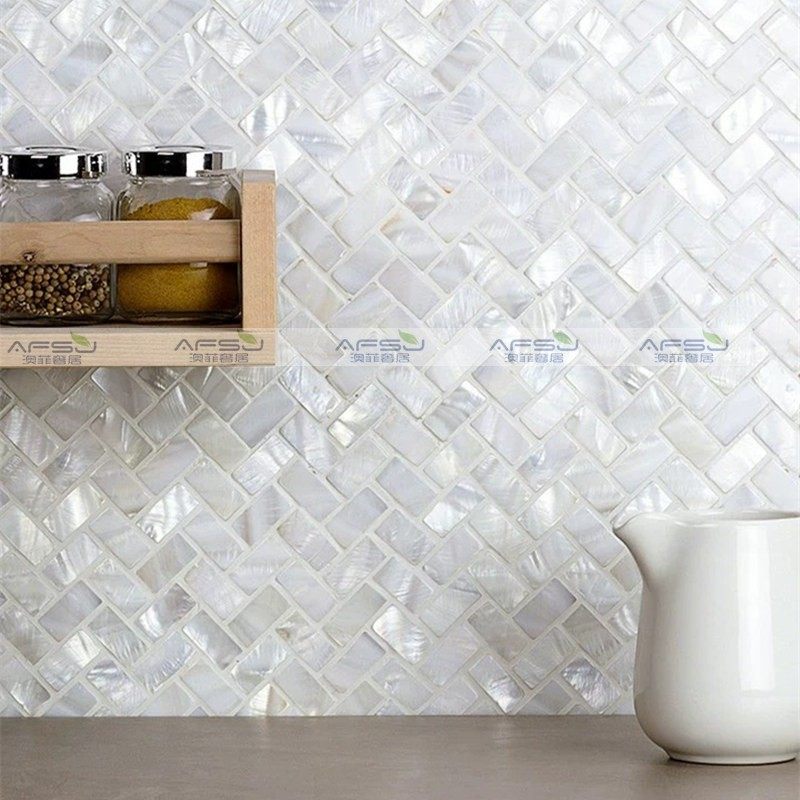 AFSJ Shell Mosaic Herringbone Parquet Natural Increase White Tile Mesh Sticker Hotel Home Bathroom Background Wall Spot