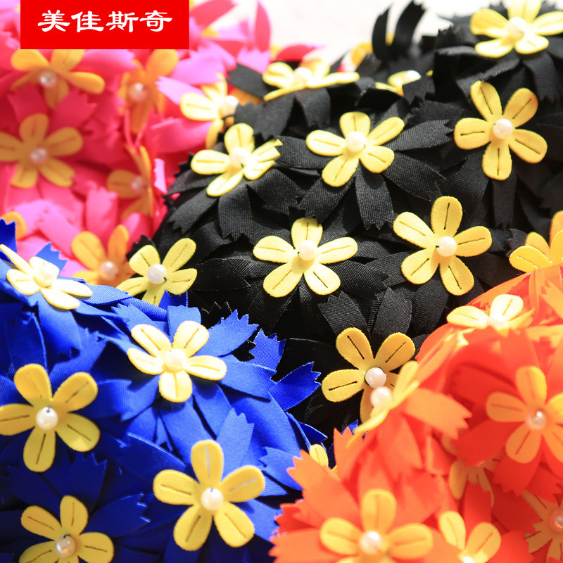 Megasky 2016 swimming cap lady long hair adult ear protection fashion and comfortable hand sewn flower pearl swimming cap