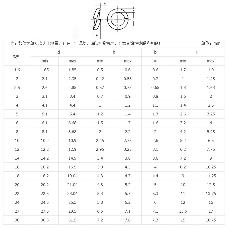 M2M3M4M5M6M8M10M12-M30 Spring Washers 8 8 Level Bounce Pad Spring Spacer Opening Washers