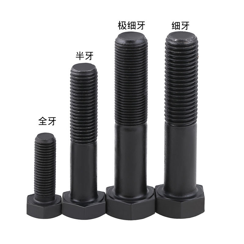 8 Grade 8 high-strength black fine-tooth outer hexagonal screw extension bolt M8M10M12*1 25*1*1 5 teeth