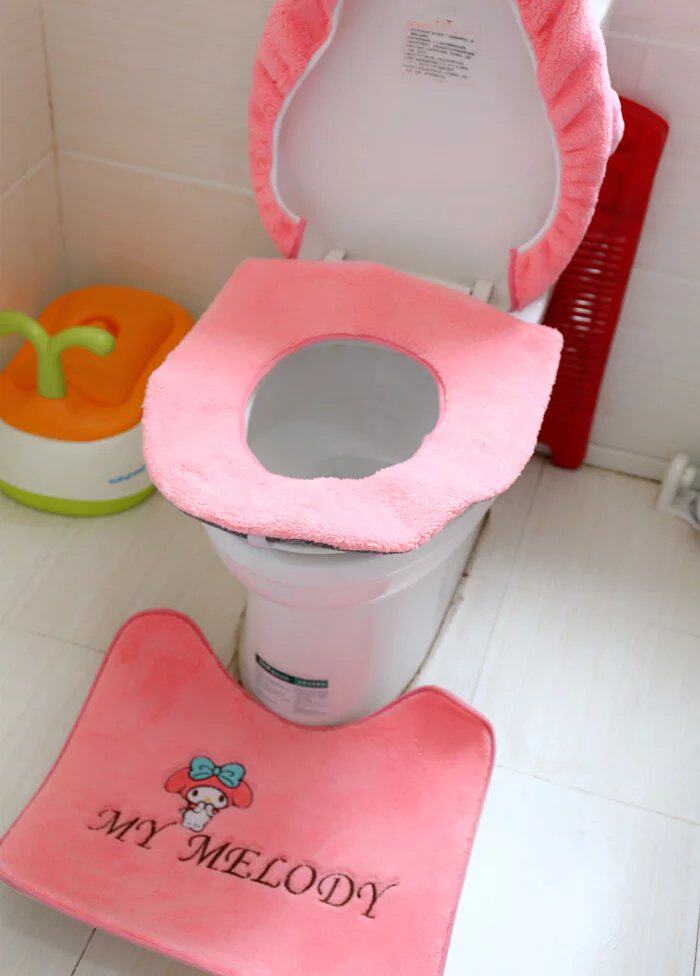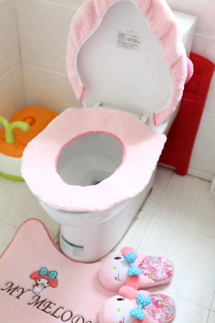 Cute cartoon plush girl's heart toilet seat three-piece set