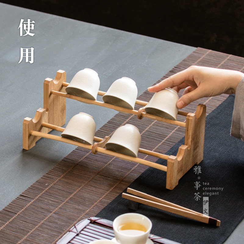 Kongfu Tea Bamboo Tea Cup Shelf Single Layer Rack Drain Cup Rack Drying Tea Rack Creative Pendulum tea Tea Tea Tea Tea Tea Set