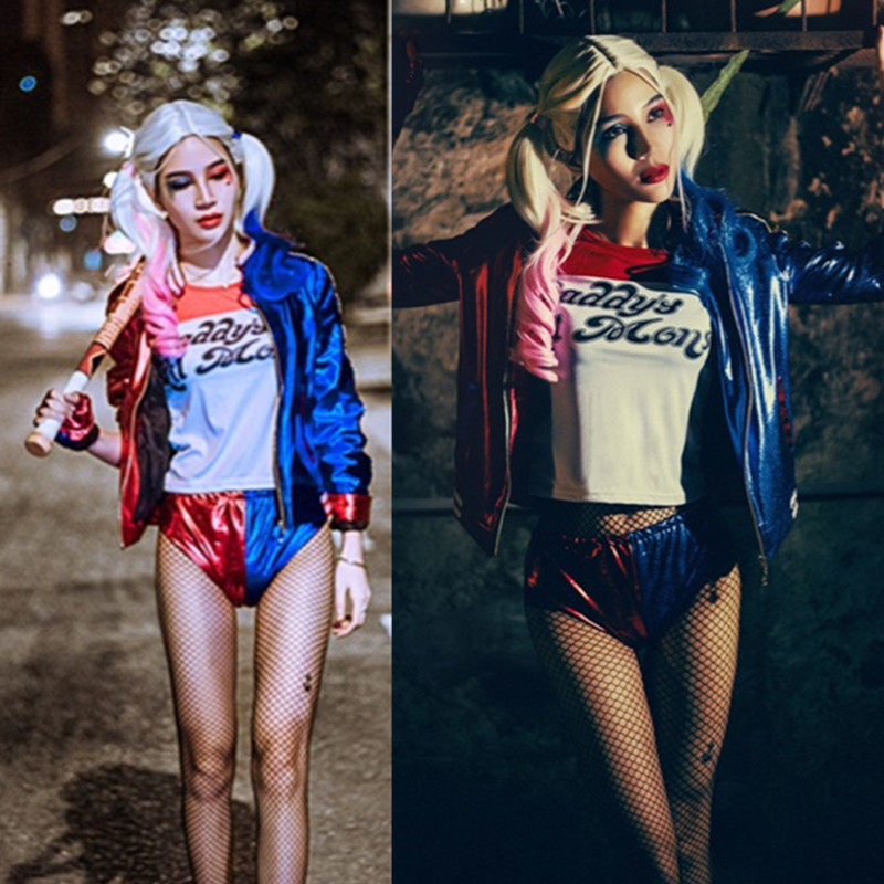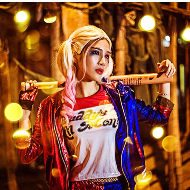 Suicide squad clown female cosplay suit Halle Quinn wig gloves full costume Clown female cos suit