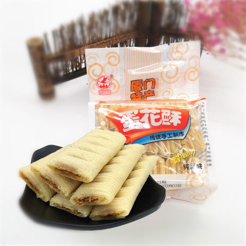 Fujian Xiamen specialty Lulin egg flower cake golden egg cake cake peanut egg roll biscuit snack 200gX3 free shipping