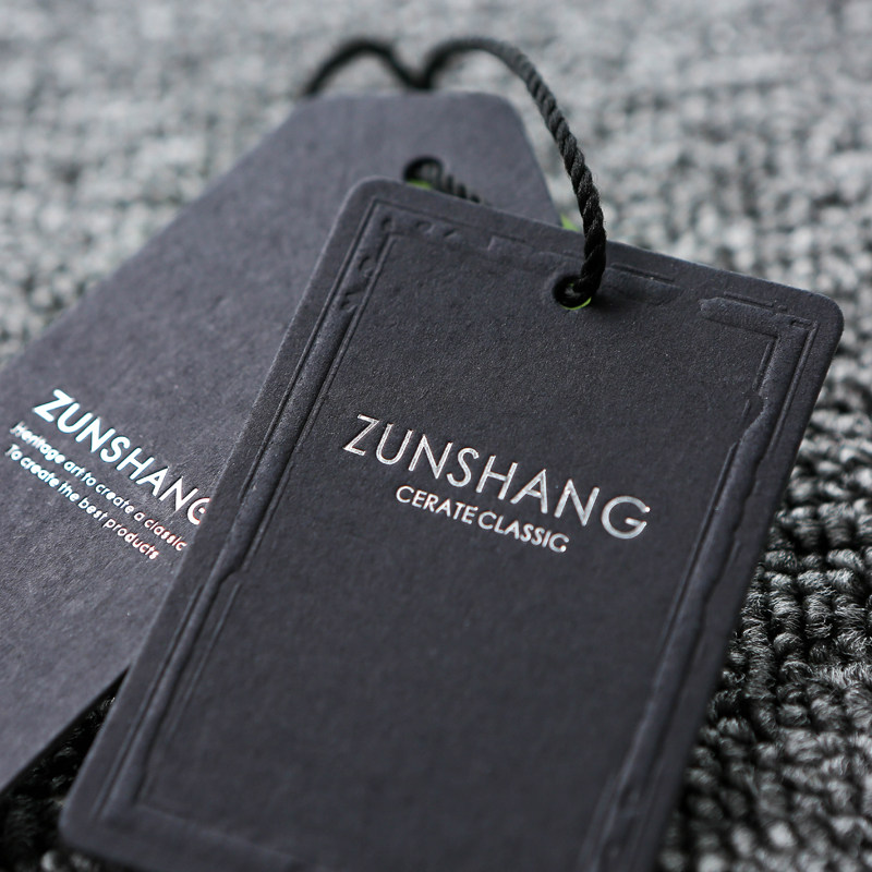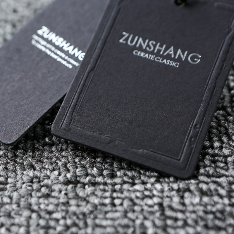 Spot black cardboard men's clothing and women's clothes hanger set to make garment trade mark signed for printing scalding gold washed collar mark