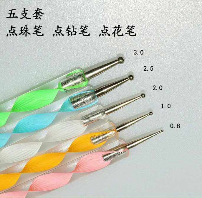 Beauty Nail Tool Phototherapy Nail Polish Glue Point Pearl Pen Point Drill Pen Point Flower Pen Pink Dot Pen 5 Sets Pen