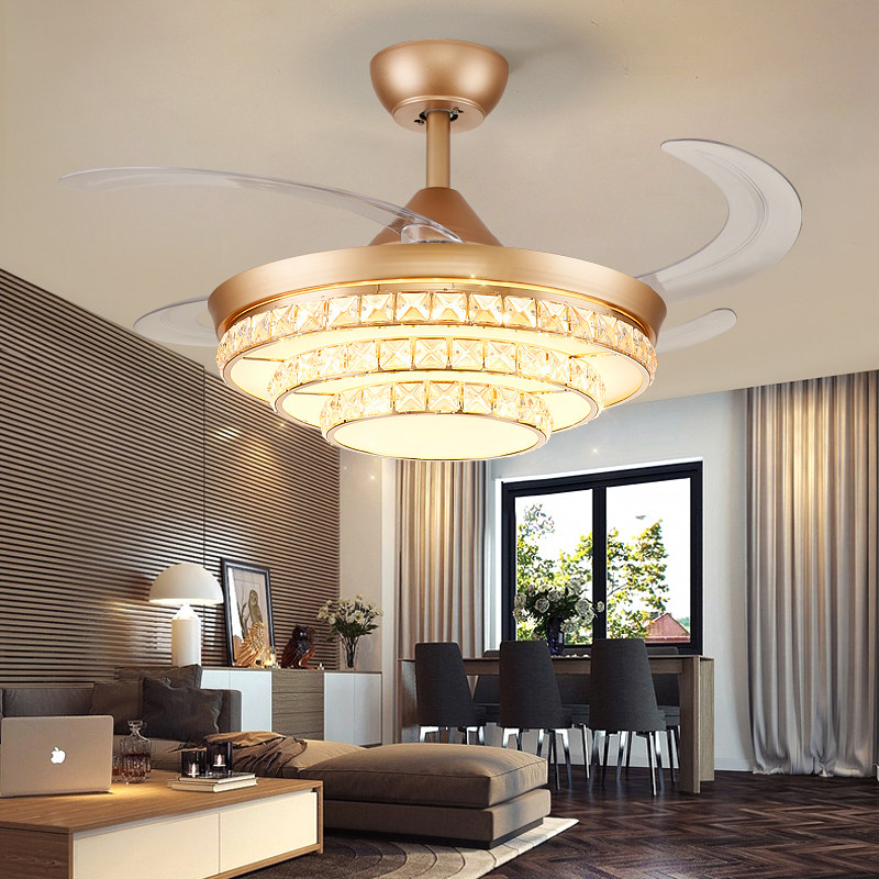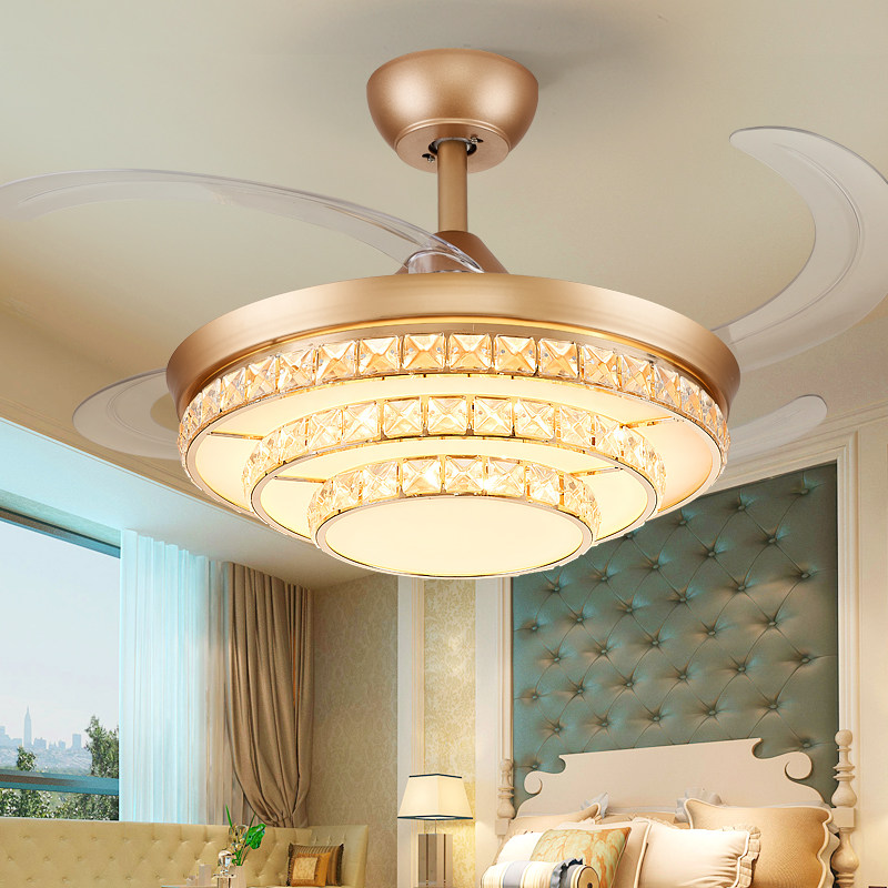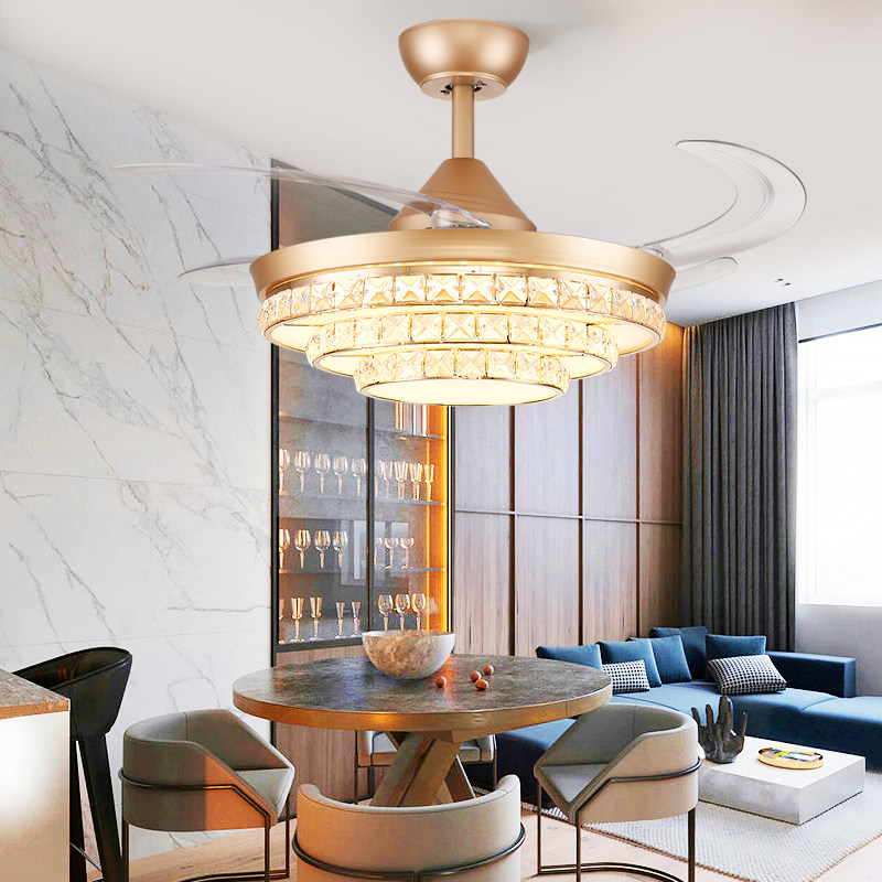King crystal ceiling fan lighting living room dining bedroom fan light simple modern inverter invisible fan chandelier