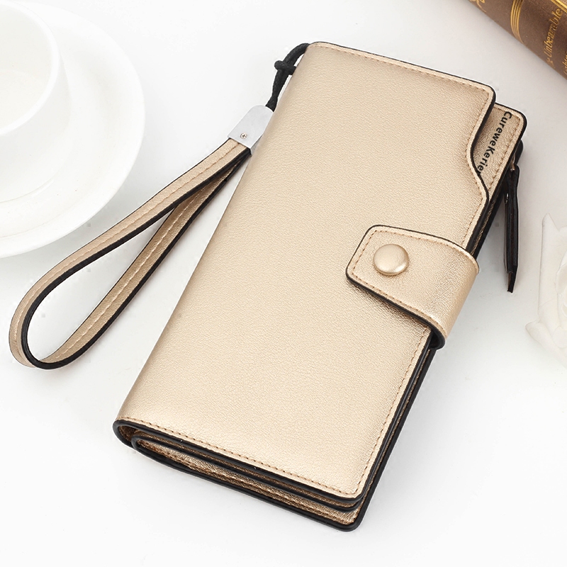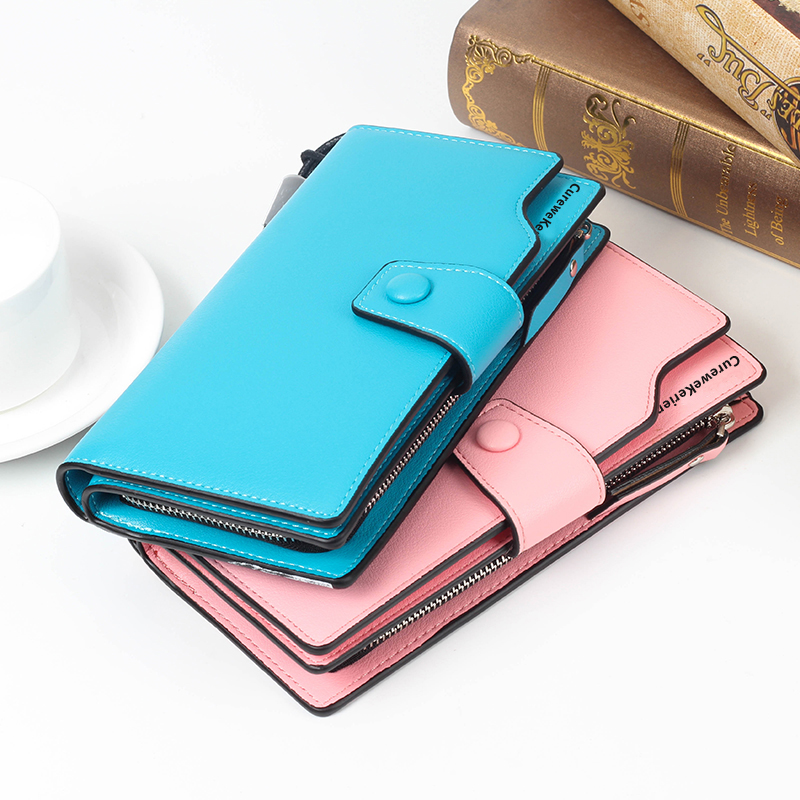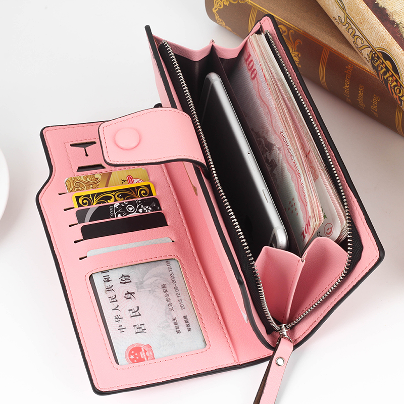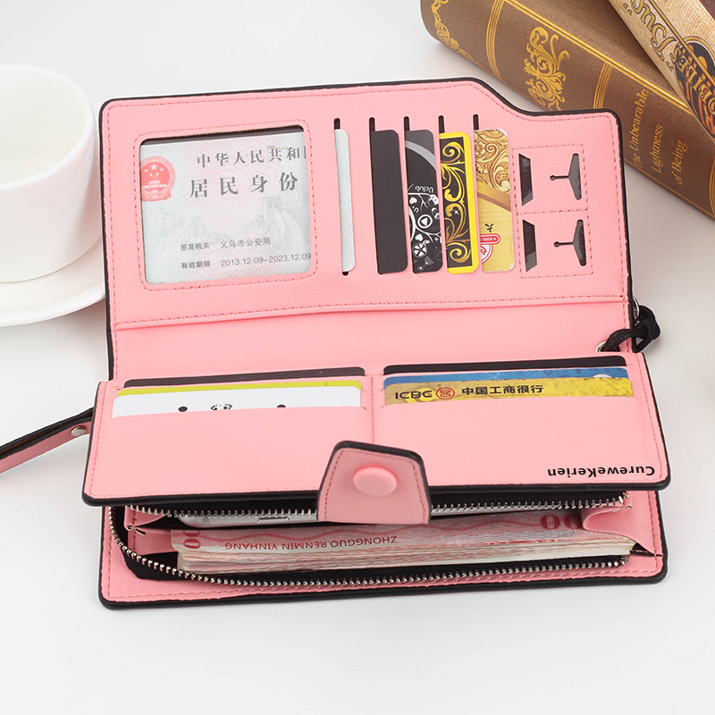 Trendy Fashion Lady Wallet Long Version Multi-Position Hand Grab Bag Small Clear Pull Chain Handbag Student Han Edition Leather Clip