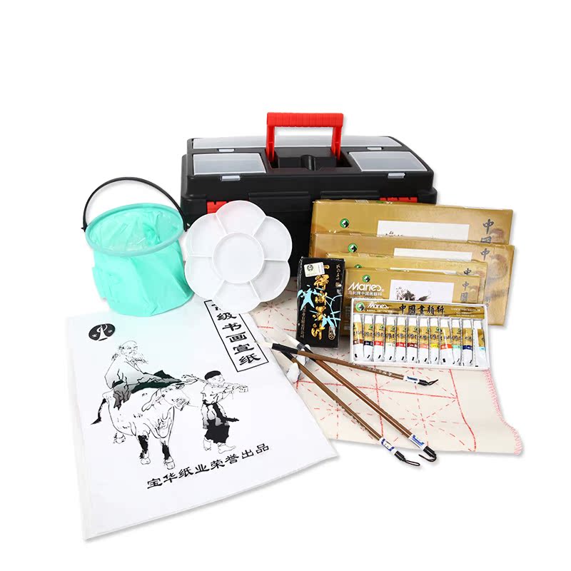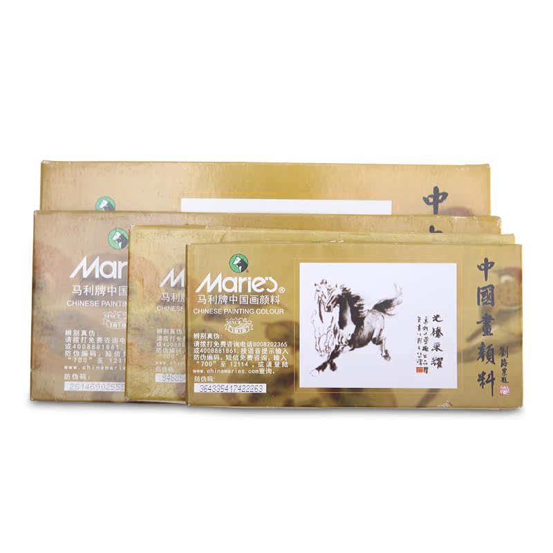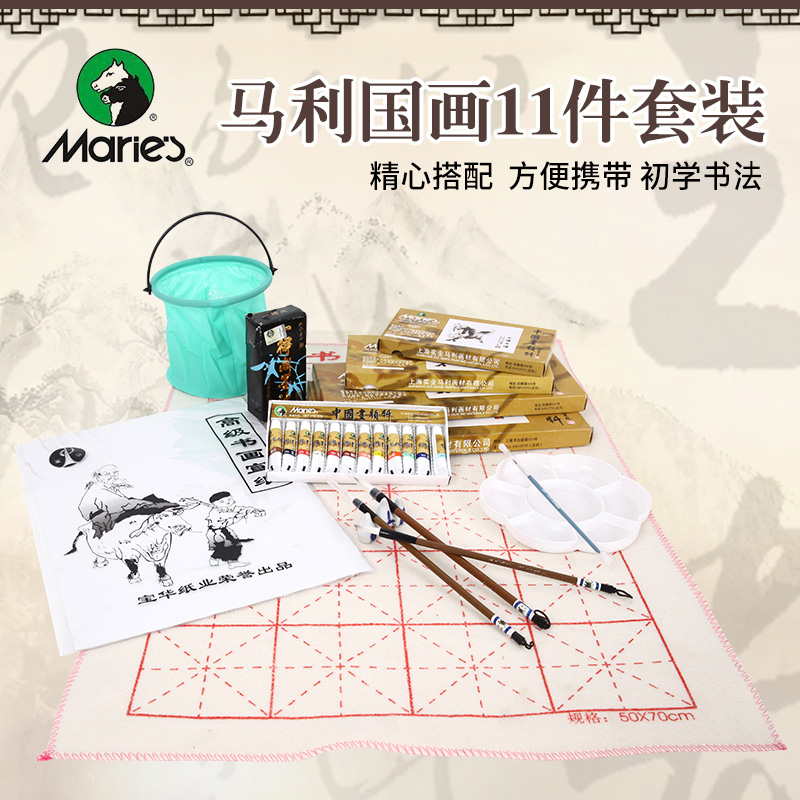 Mali brand Chinese painting pigment set 12 colors beginner peony landscape painting Chinese painting brush calligraphy practice tool