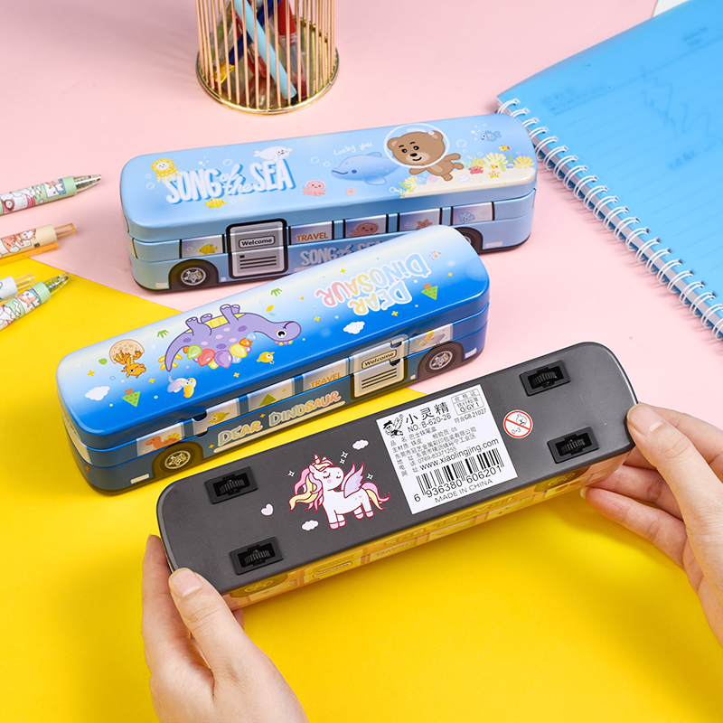 Creative Bus Pencil Case Multifunction Lead Pencil Case Iron Case Children Study Supplies Male And Female Elementary School Children Double Pencil Case