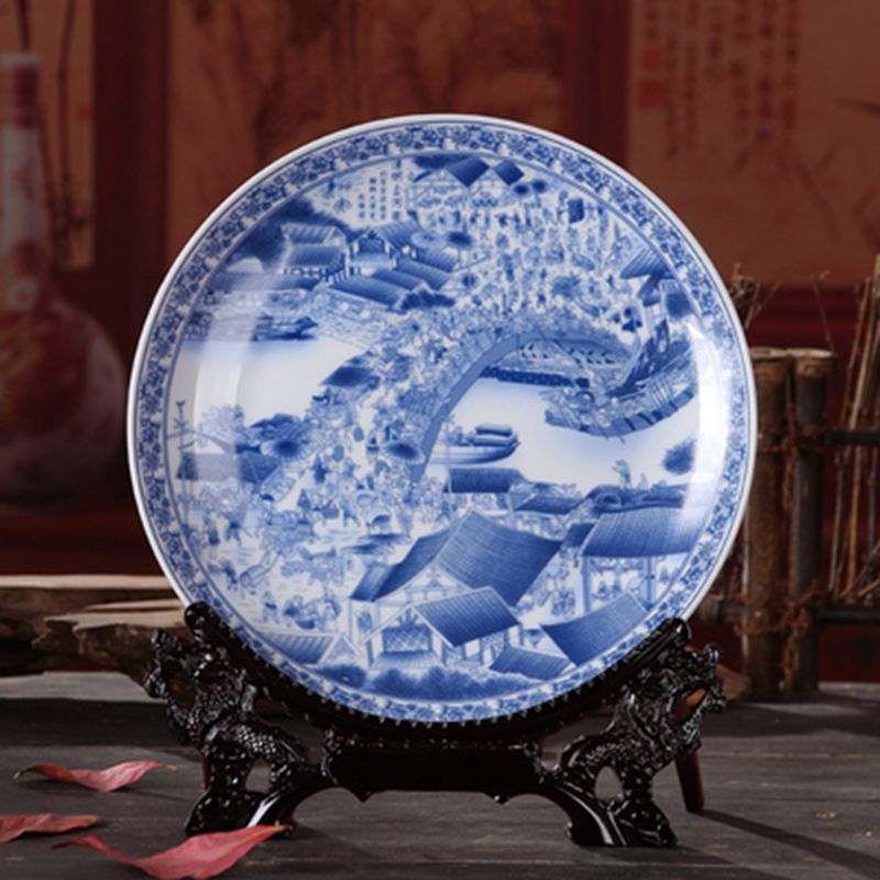 Jingdezhen Ceramic instrumental hanging disc Decorative Plate Background Wall Sitting Pan Watch Pan Modern Chinese Living Room Adornment Pendulum