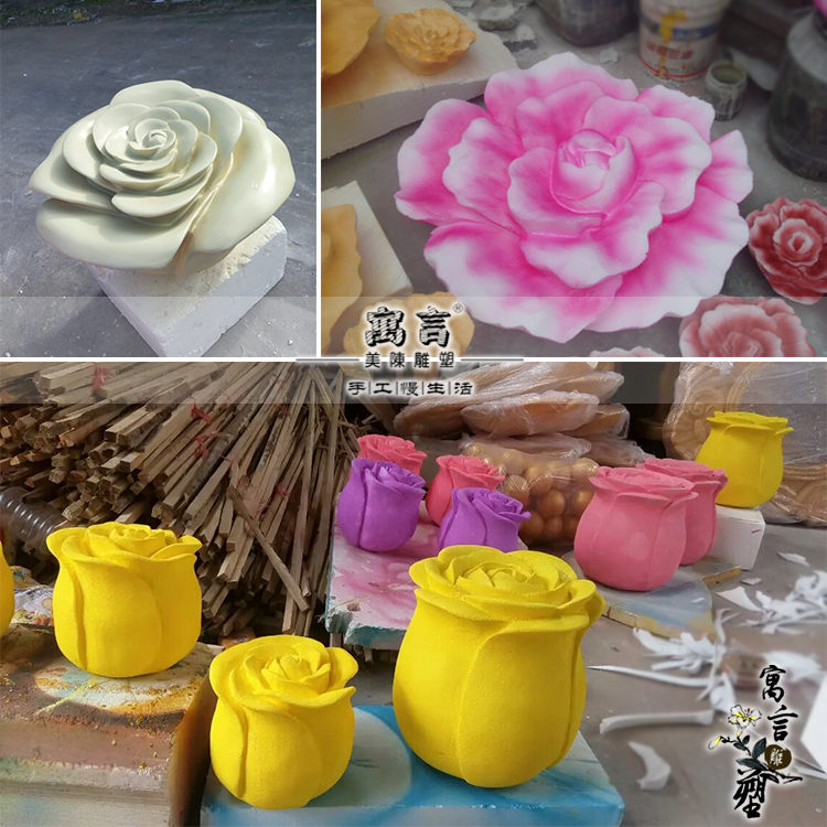Customize extra-large golden solid flower Rose peony flower foam sculpture high-end senteal wedding bubble engraving props