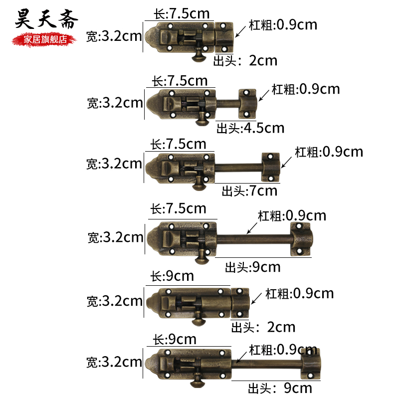Hao Tian Fasting Antique Windows Copper Bolt Gates Chinese Style Door Bolt Iron Door Old Wooden Door door inserts Dressing Room Door Buttons