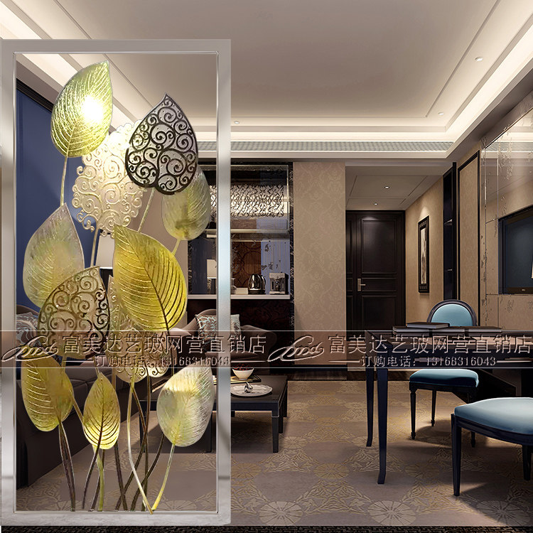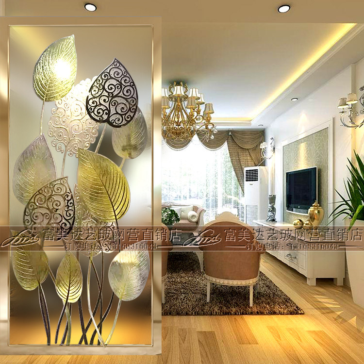Eurostyle Art Glass Screen Xuanguan Living Room Shoes Cabinet Double-sided Light Transmission Partition Background Wall Carved Crafts Glass
