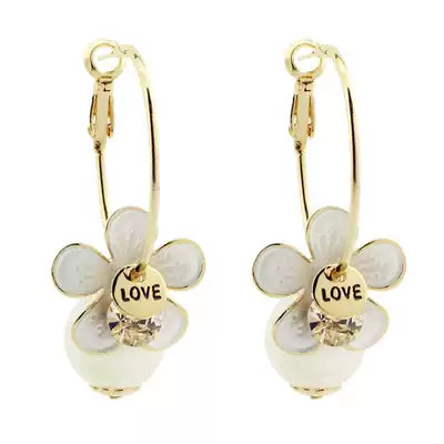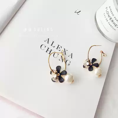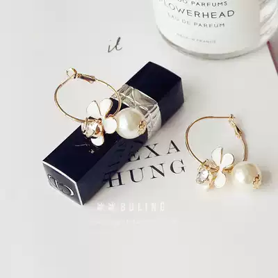 Korean Korean zircon big flower pearl earrings pendant earrings sweet temperament exaggerated earrings metal earrings