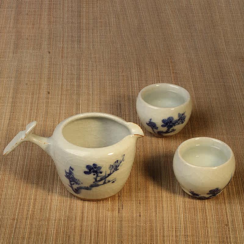 Taiwanese potter Chen Mingqian hand-painted blue and white ice jade gong cup plum blossom Ding put the gongdao cup open piece tea sea handmade