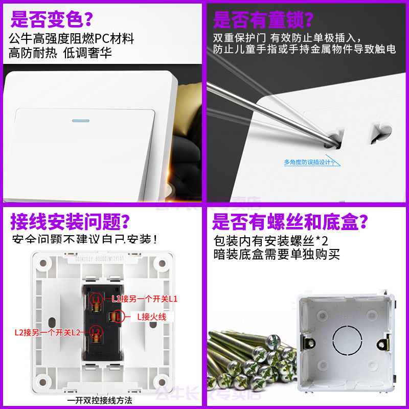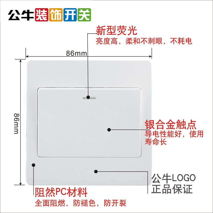 Bull switch socket power supply single open double cut 86 type wall decoration household 1 open one open double cut panel switch