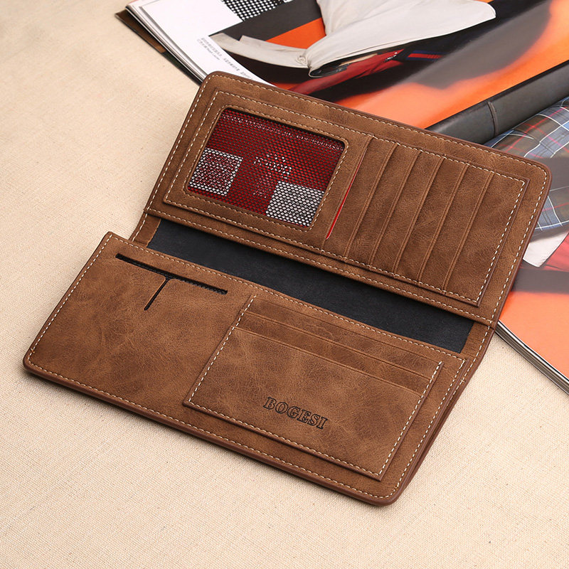 Men's Wallet Long Version Fashion Trends Thin Money Clip Youth Retro Hand Grab Bag Casual Student Leather Clip Japan-South Korea Wave